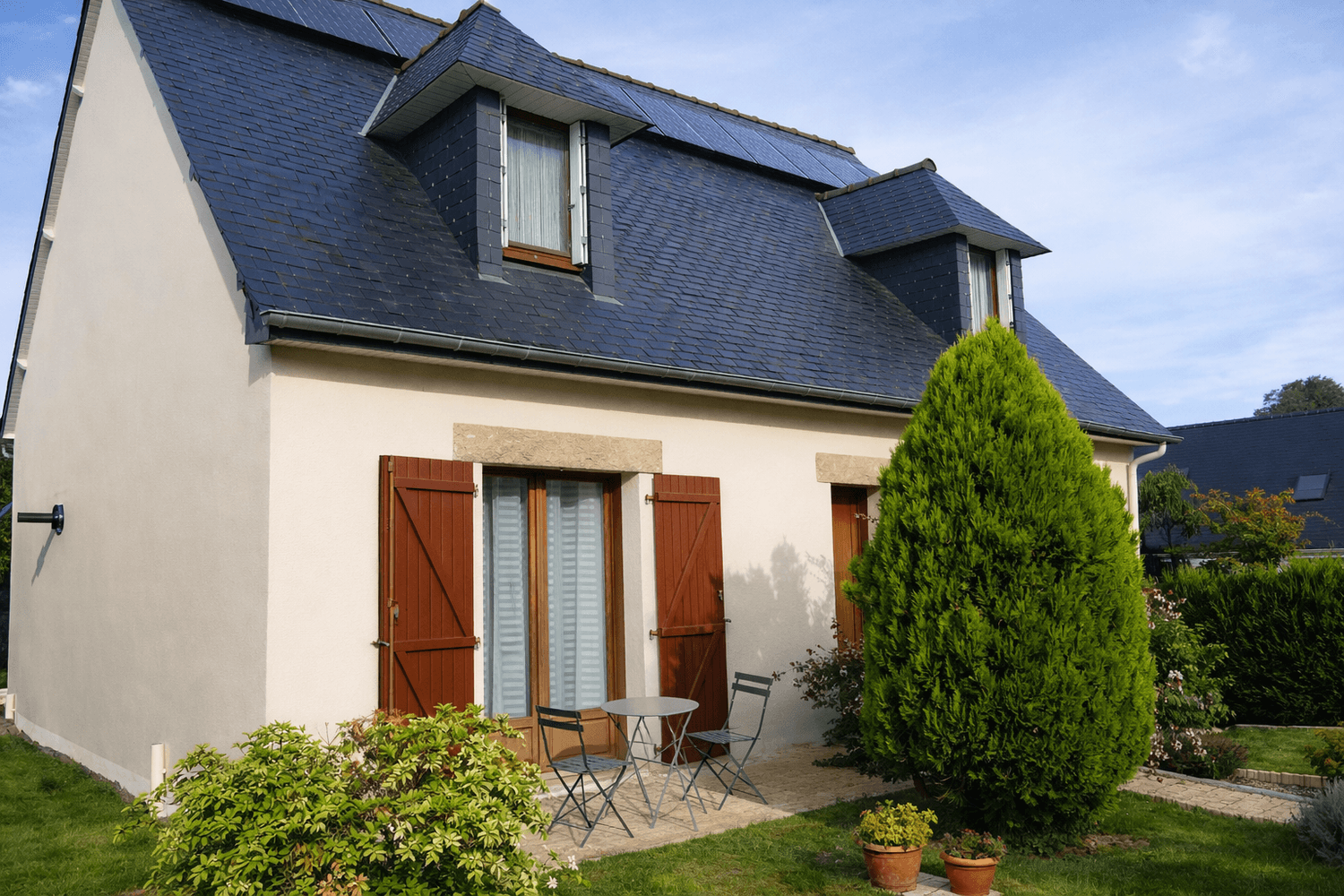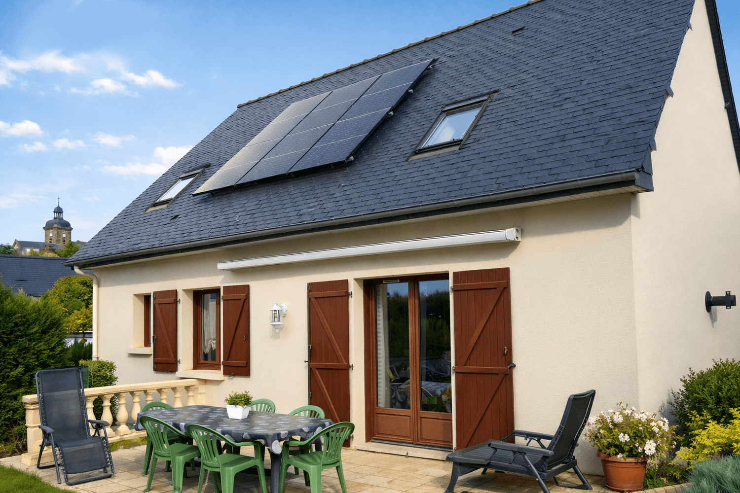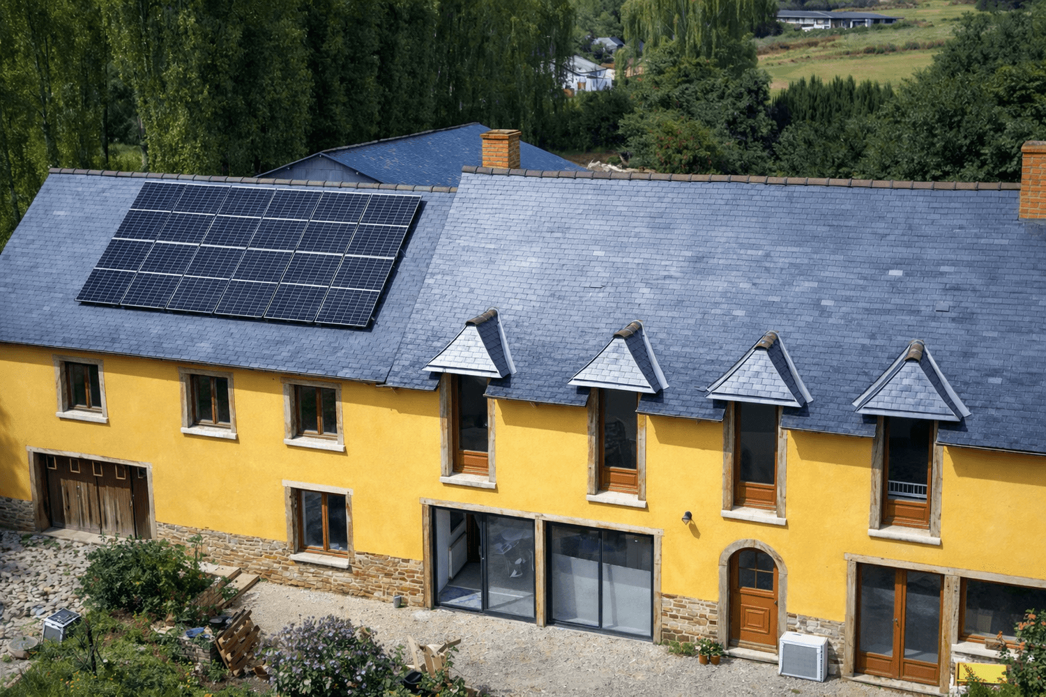 X À éviter : des panneaux solaires encastrés dans la toiture, réduisant l'efficacité des panneaux photovoltaïques en raison de la chaleur commulée sous les panneaux ce qui influence leur électronique.